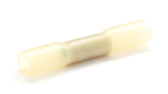 Red, Blue & Yellow Heat shrink butt connectors for the joining of multi-stranded copper cables from 0.1mm2 to 6mm2. The transparent heat shrinkable polyolefin insulation enables inspection of the joint and protects against moisture. Maximum Voltage 600V, Shrink temperature +150°C, Operating temperature -10°C to 105°C.