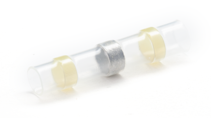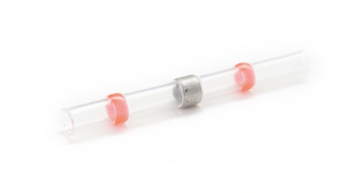 Polyethylene heat shrinkable solder cable connectors, for the joining of multi and solid strand copper cables. Terminals consist of Polyethylene, solder ring with flux, glue ring adhesive. Operating temperature -45 to +125, Shrinking temperature +125 to 180, Maximum Voltage 600V. Heat Shrink Solder Butt Connectors are ideal for joining cables without the need for crimping. When properly shrunk the solder within the butt flows connecting your wires together, whilst the melted adhesive rings in combination with heat-shrink tube provide a seal resistant to water and other contaminants. The translucent tubing allows visual inspection ensuring the cables are inserted safely and correctly as well as providing excellent abrasion and strain resistance.