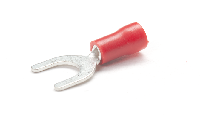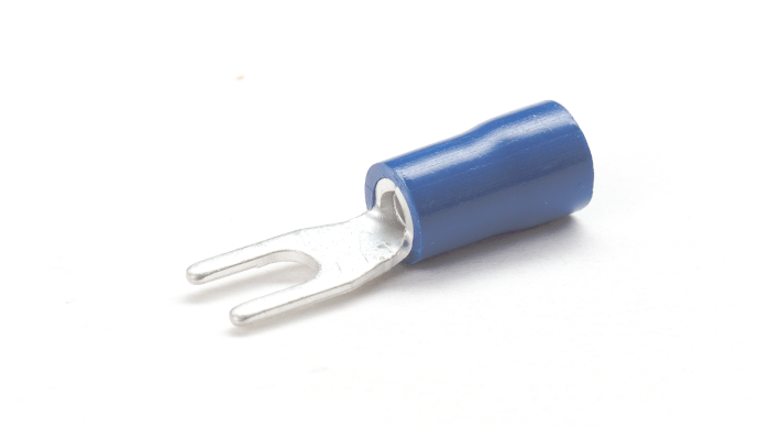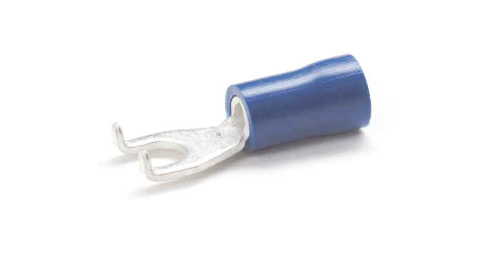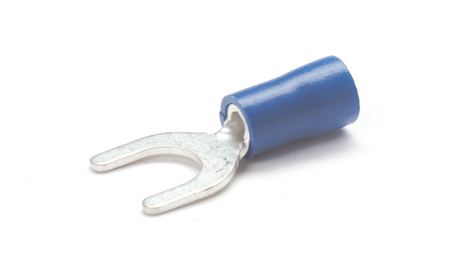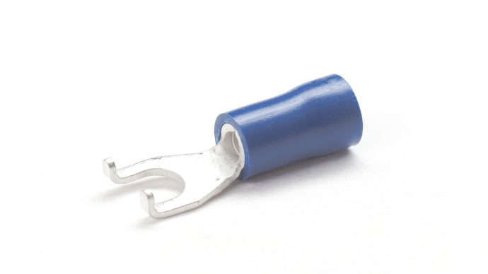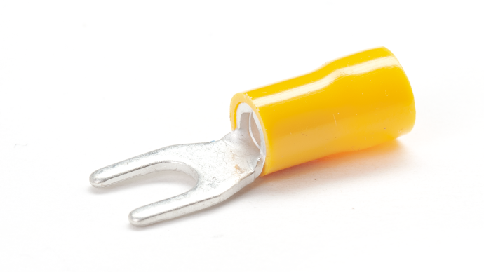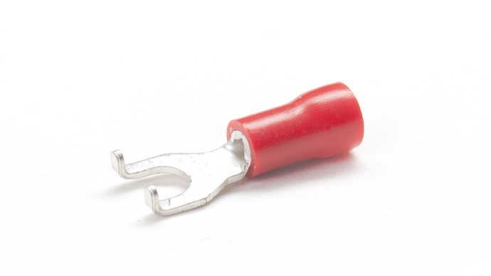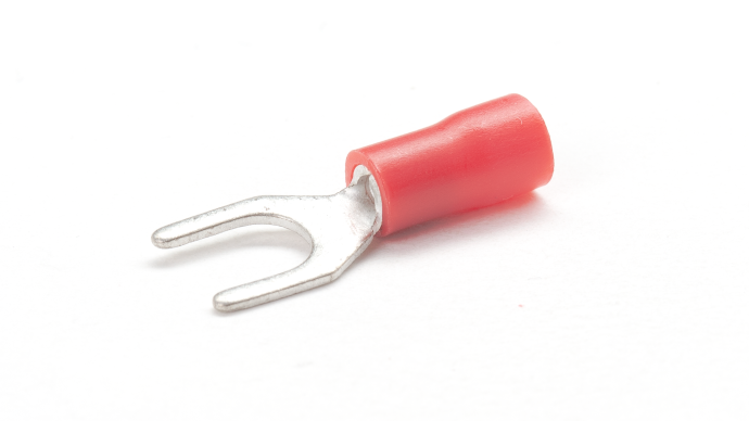 Red, Blue & Yellow PVC insulated Copper fork terminals for terminating multi-stranded copper cables and wires 0.5mm2 to 6mm2 , Temperature rating -20⁰C to +75⁰C , Maximum Voltage 600V.